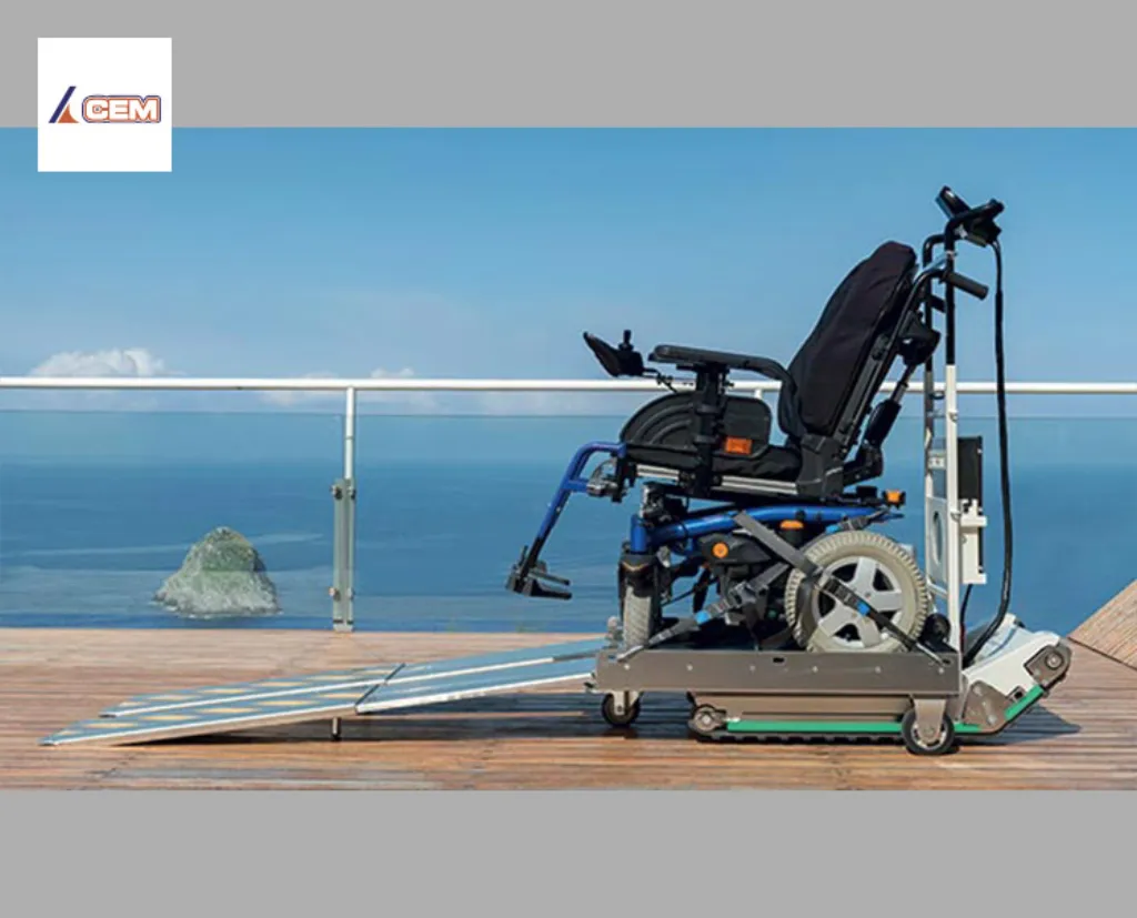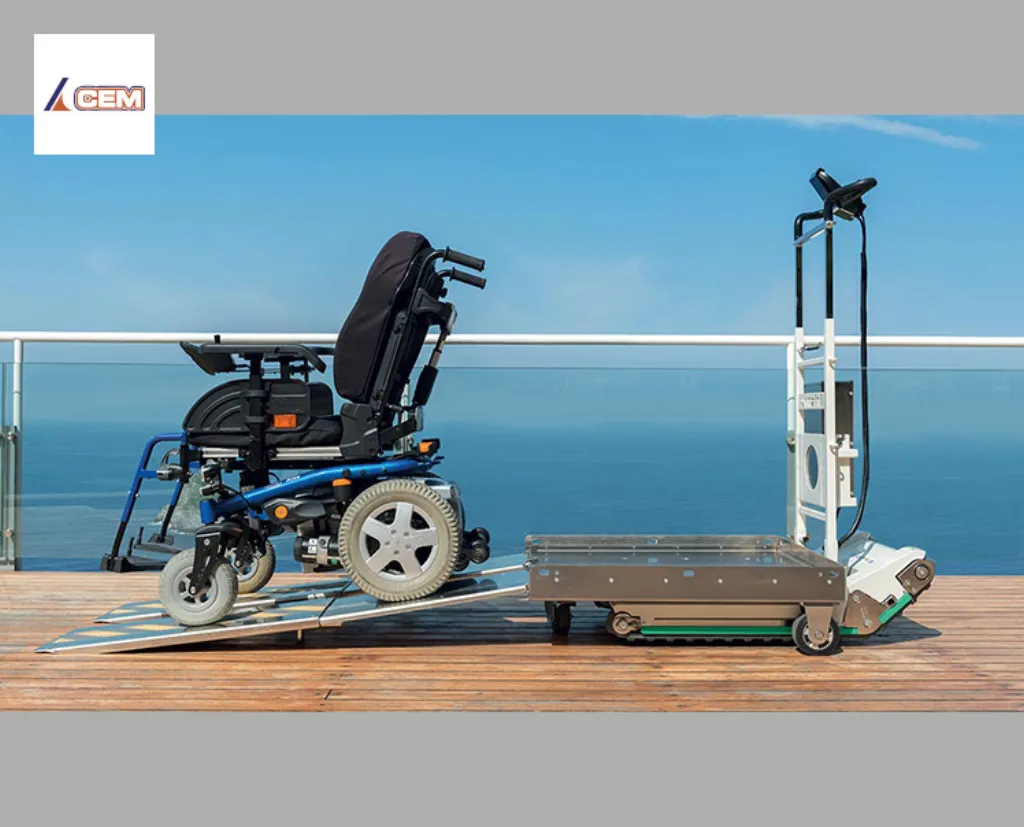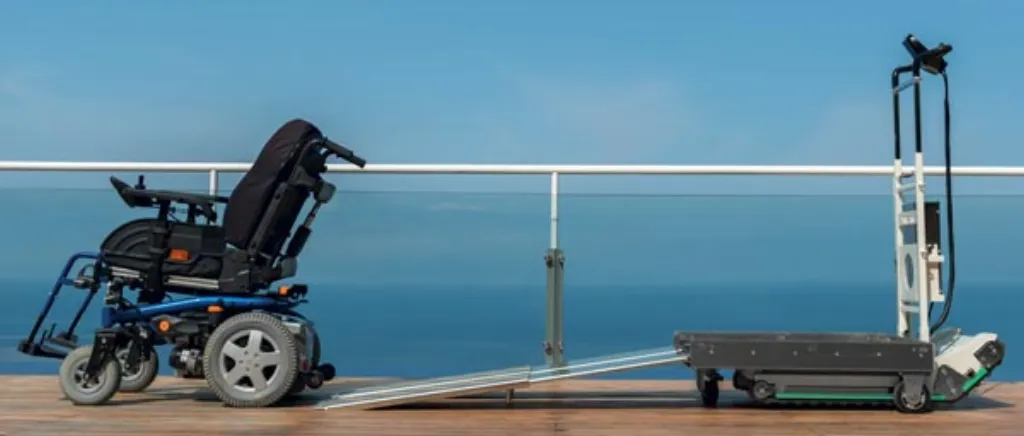 El alargamiento de las rampas supone una reducción de la inclinación de la silla de ruedas con respecto al suelo lo que facilita que el operario se ocupe de cargar la silla de ruedas en la superficie de transporte.